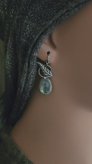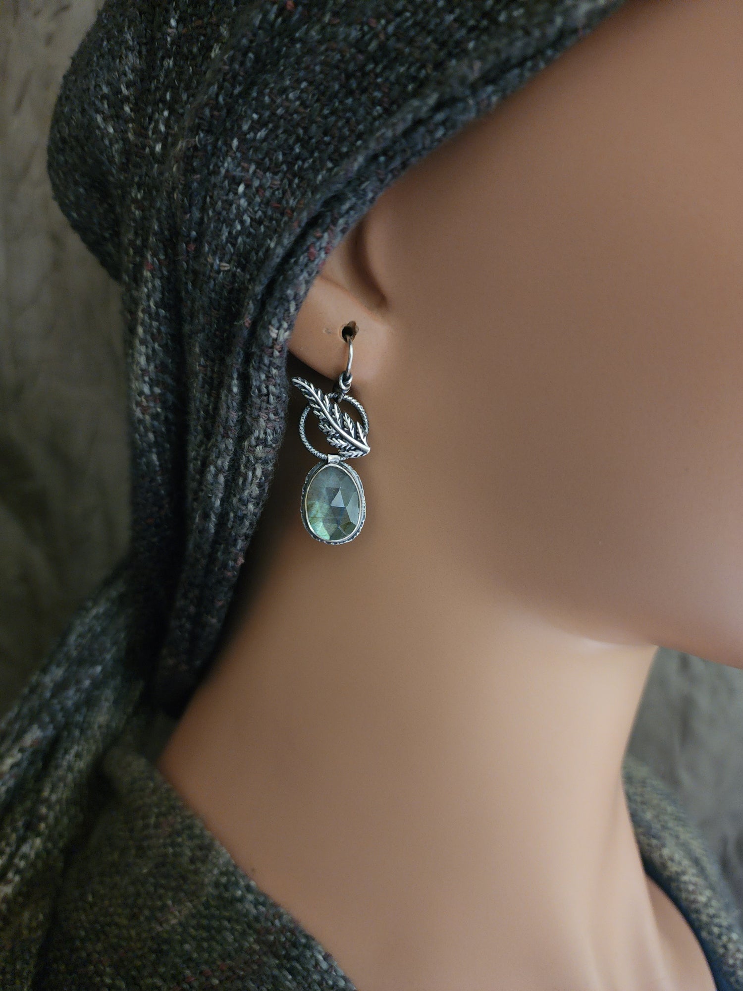 Beautiful, flashy forest green labradorites, set in sterling silver with sterling silver ferns.
